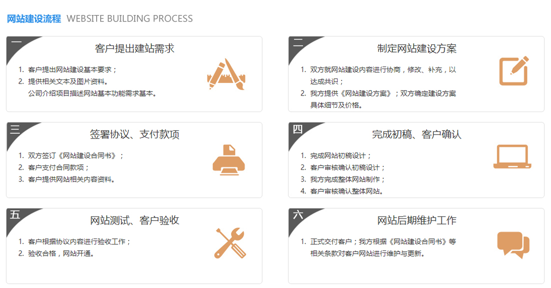 为了利于企业网站后期推广和营销需求,网页均通过动态程序生成了静态html页面,全站利用CSS+DIV进行制作,页面代码符合W3C标准,完美兼容目前主流的各大浏览器,充分考虑SEO优化,符合各大搜索引擎搜索规则。